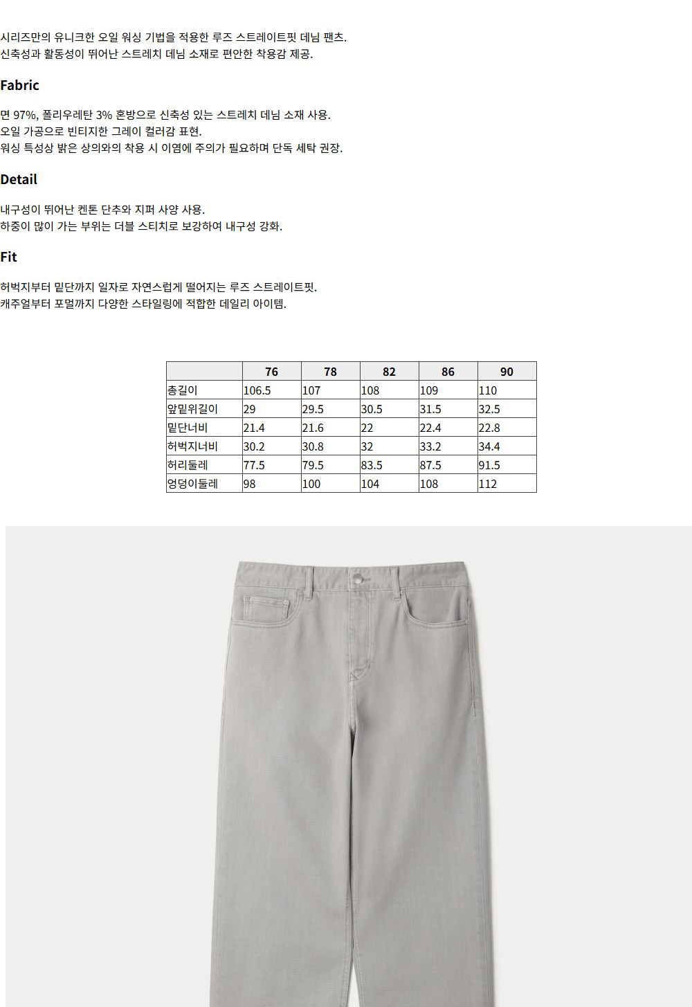 시리즈 더티크림 루즈스트레이트 데님팬츠 라이트 그레이