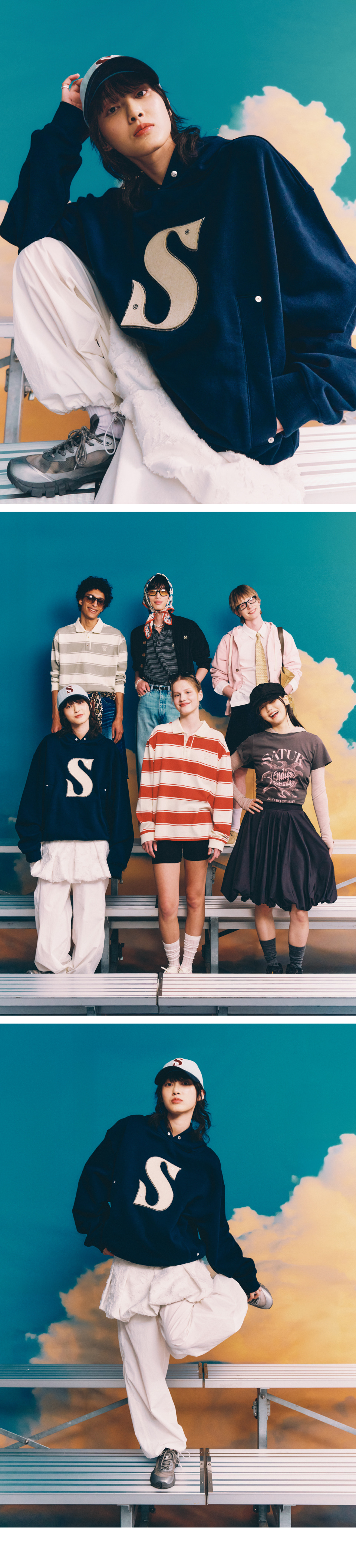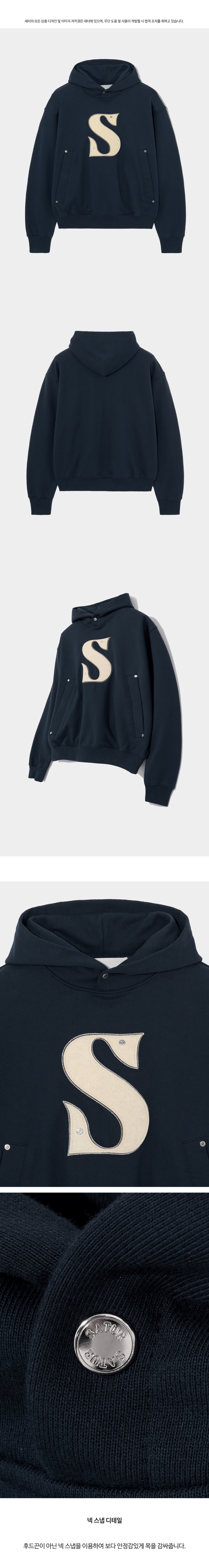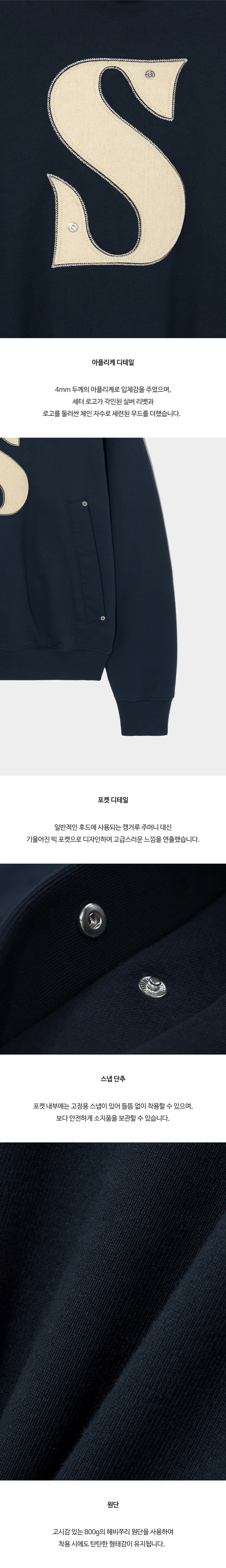 세터 리벳 아플리케 포켓 로고 후드 클래식 네이비