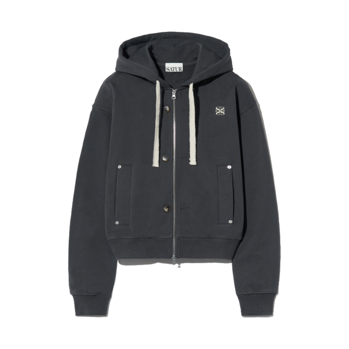 SATUR Teo Cotton All Day Hood Zip Up Classic Charcoal