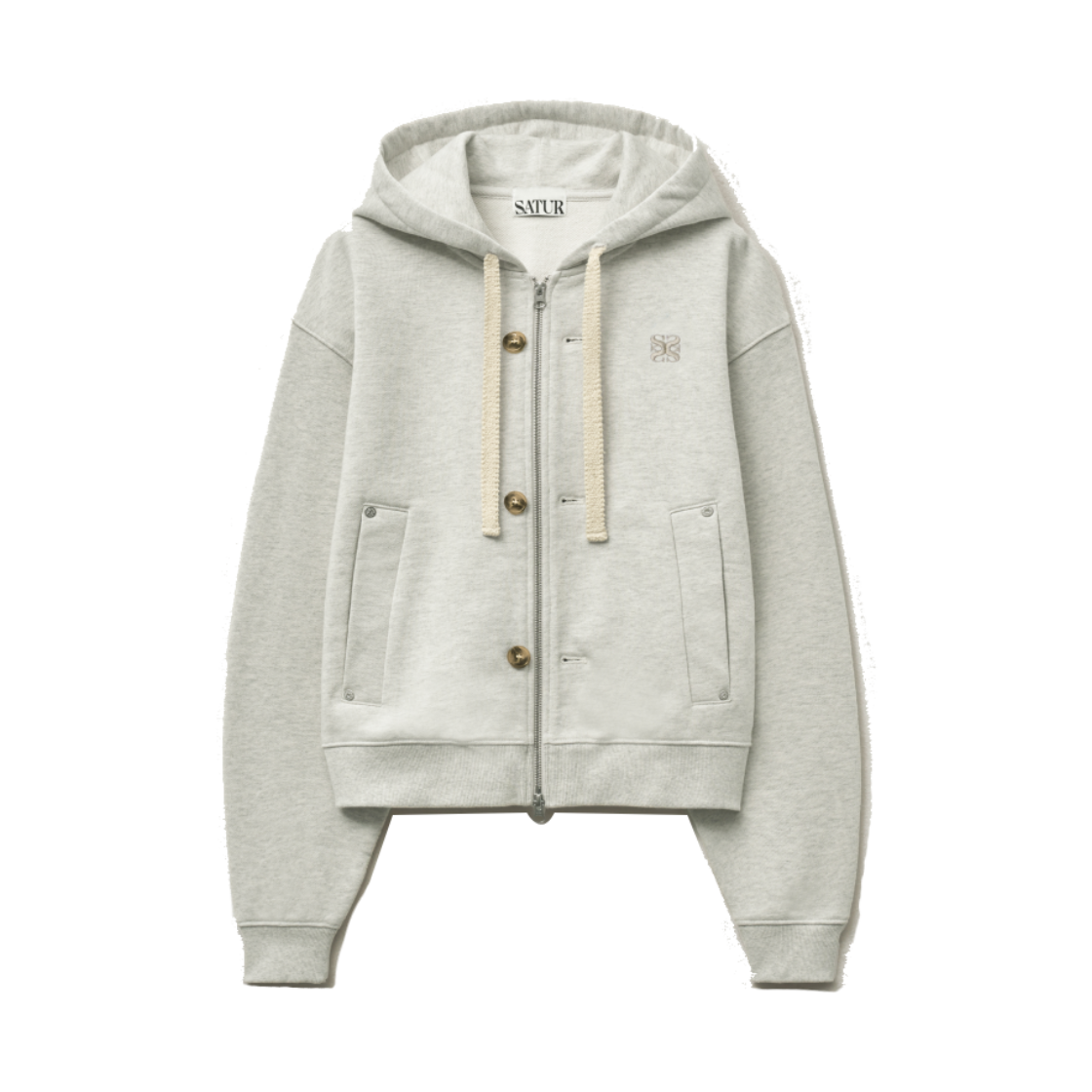 SATUR Teo Cotton All Day Hood Zip Up Melange Ivory