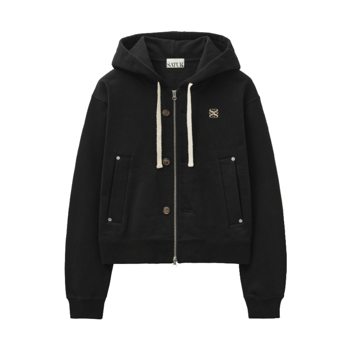 SATUR Teo Cotton All Day Hood Zip Up Palette Black