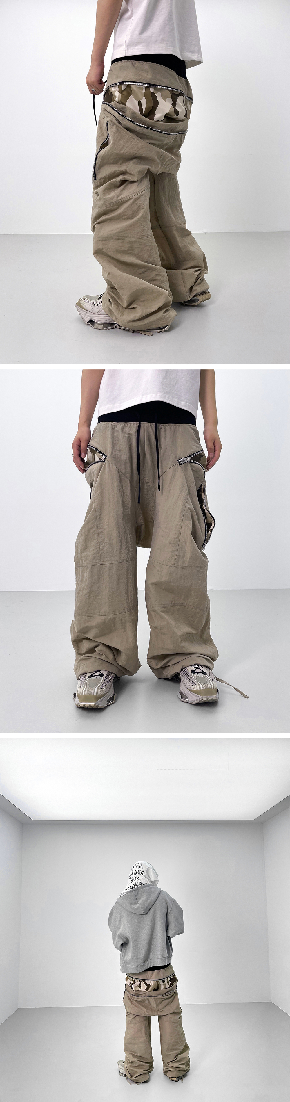 [KREAM 단독] ROARINGRAD Zipper Sagging Pants Nylon Ver. Beige