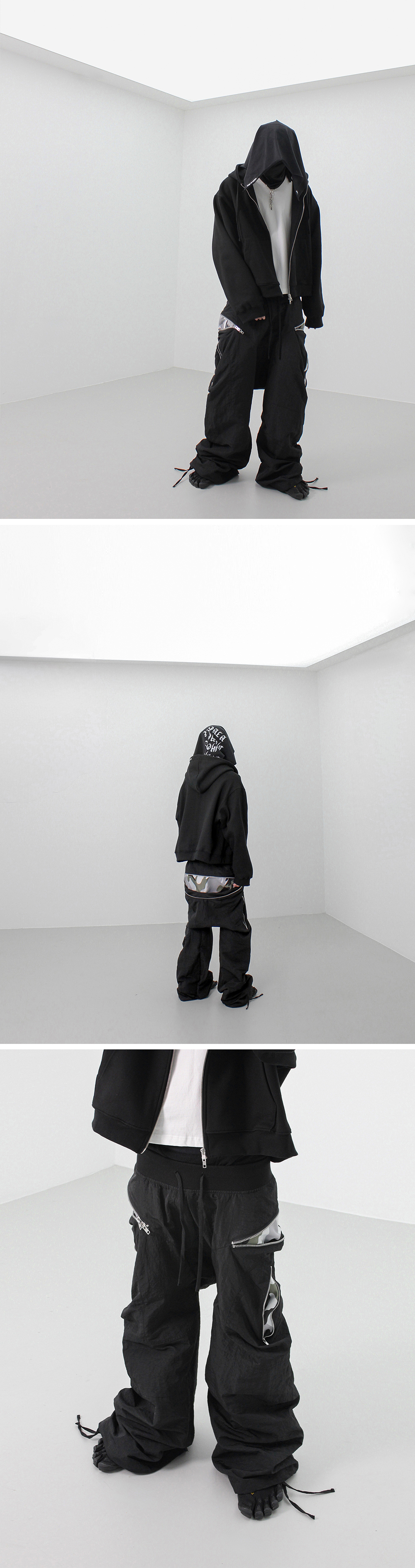 Fabric : 100% Nylon - 와이드 핏 - 카모 배색 - 히든 포켓 - 허리 및 밑단 조절 스트링 - 2way Zipper 8호 YKK 社 • 제조국 : 대한민국 • 세탁 방법 : 찬물 세탁 권장, 건조기 사용 금지 Size Spec (CM) M : 허리 40, 허벅지 34, 밑위 40, 밑단 34, 엉덩이 62, 총장 114 L : 허리 42, 허벅지 36, 밑위 41, 밑단 35, 엉덩이 64, 총장 116