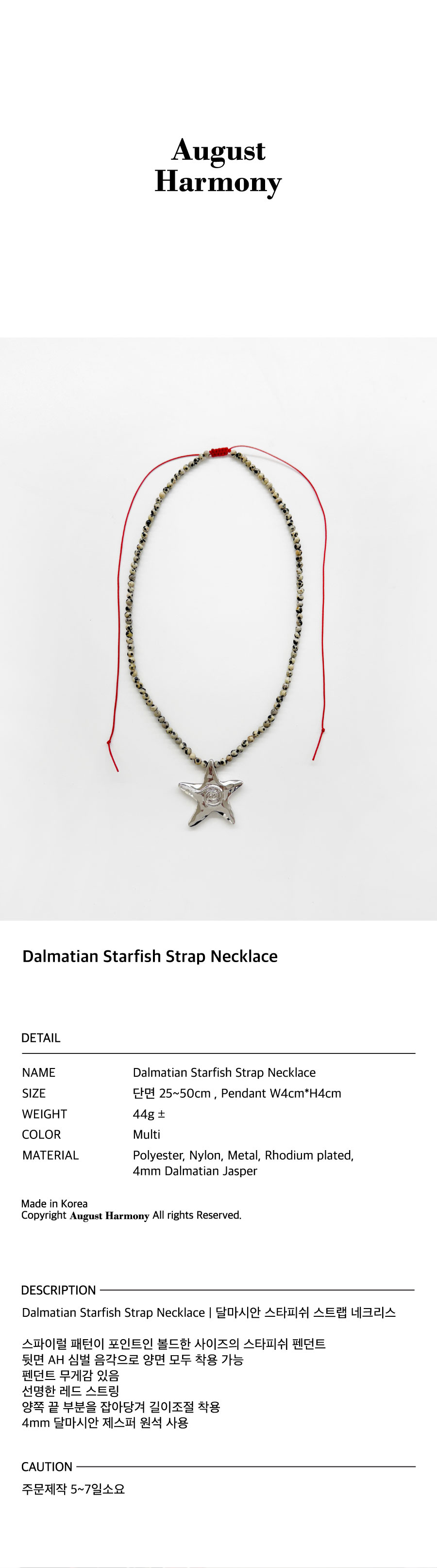 어거스트하모니 달마시안 스타피쉬 스트랩 네크리스