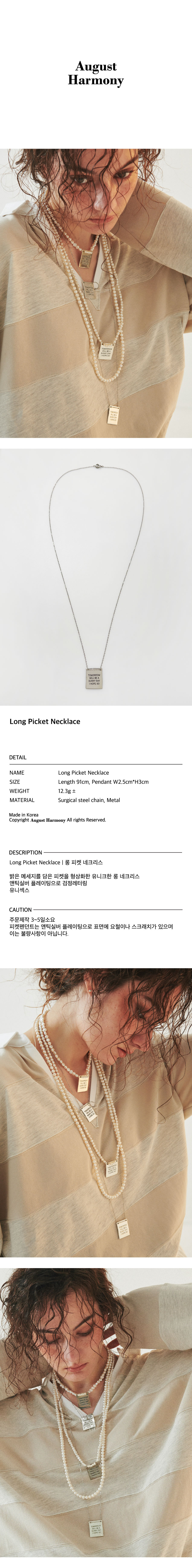 어거스트하모니 피켓 롱 네크리스 실버