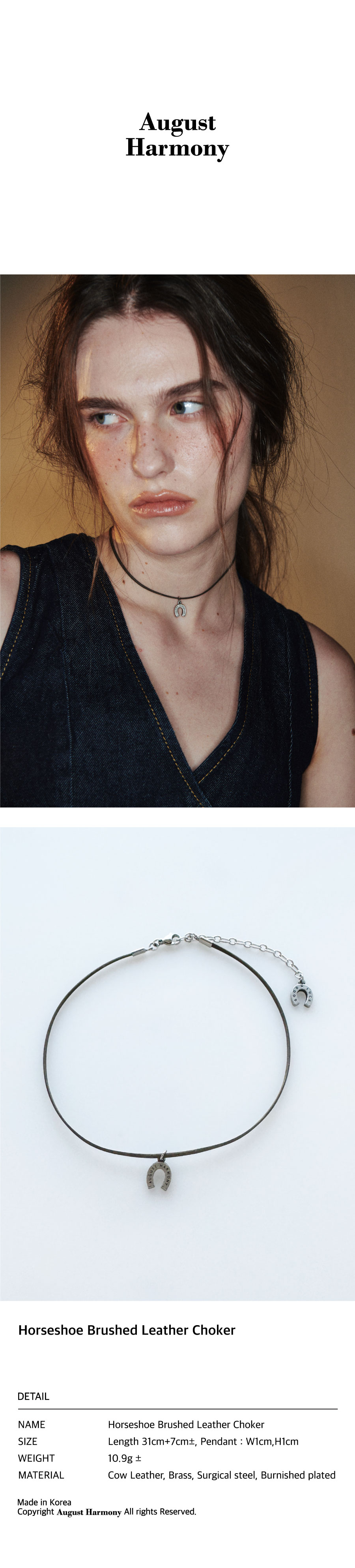 어거스트하모니 홀스슈 브러쉬드 레더 초커