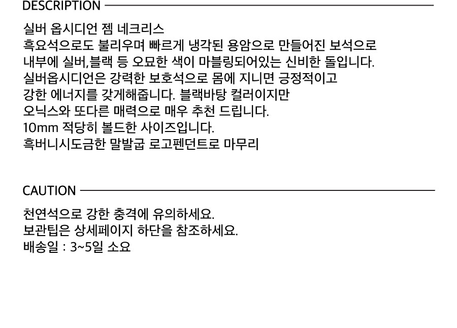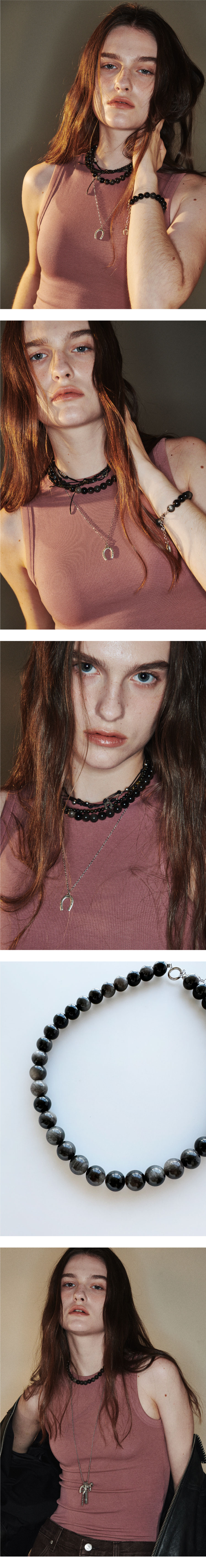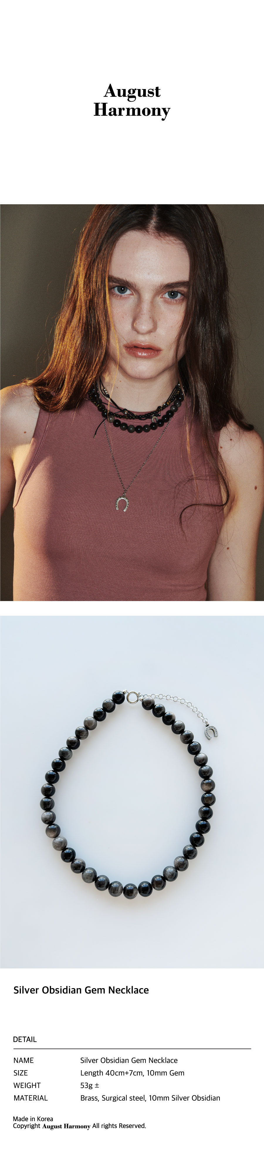 어거스트하모니 실버 옵시디언 젬 네크리스