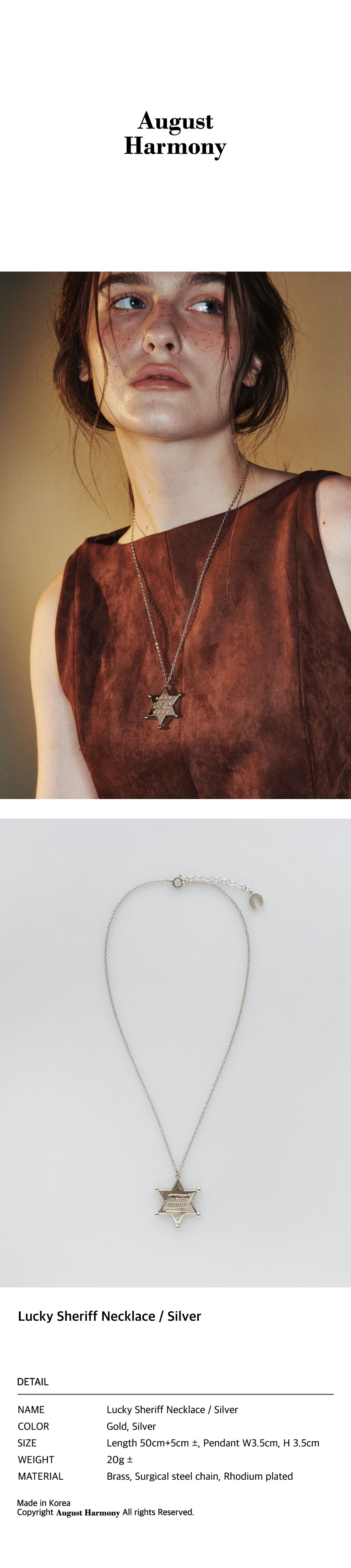 어거스트하모니 럭키 쉐리프 네크리스 실버