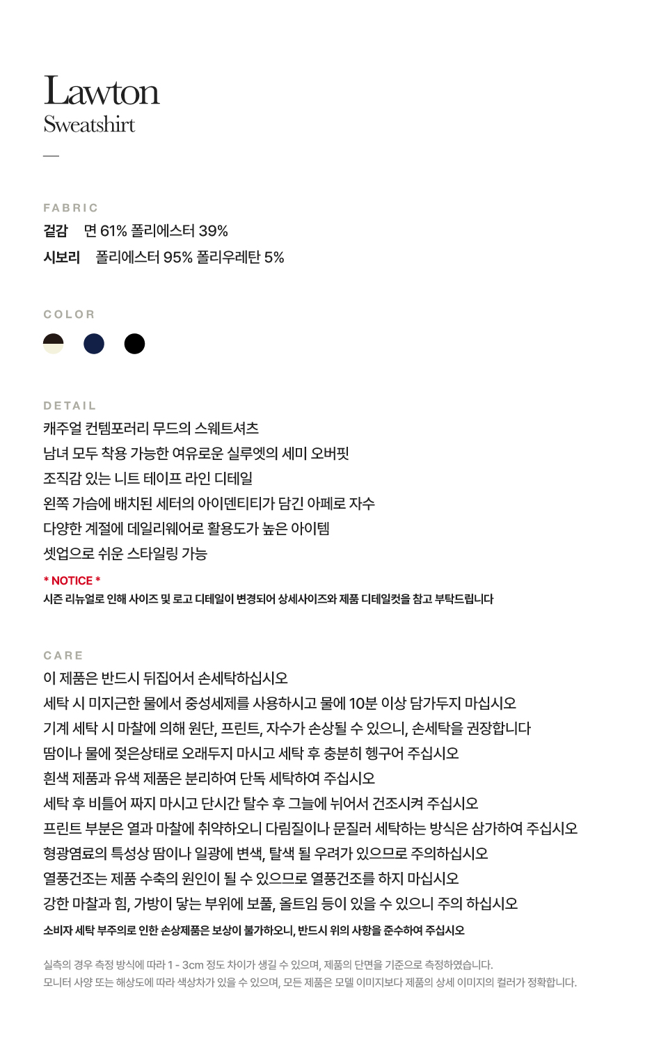 측정 방법에 따라 사이즈에 일부 오차가 있을 수 있습니다.