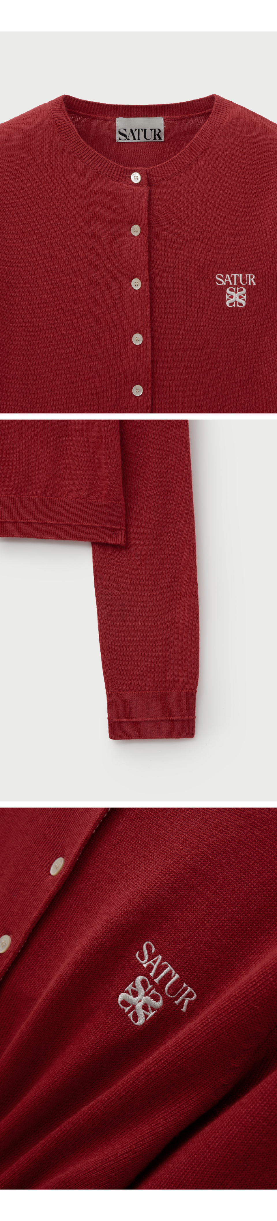 SATUR W Loren Basic Crew Neck Fine Cardigan Red