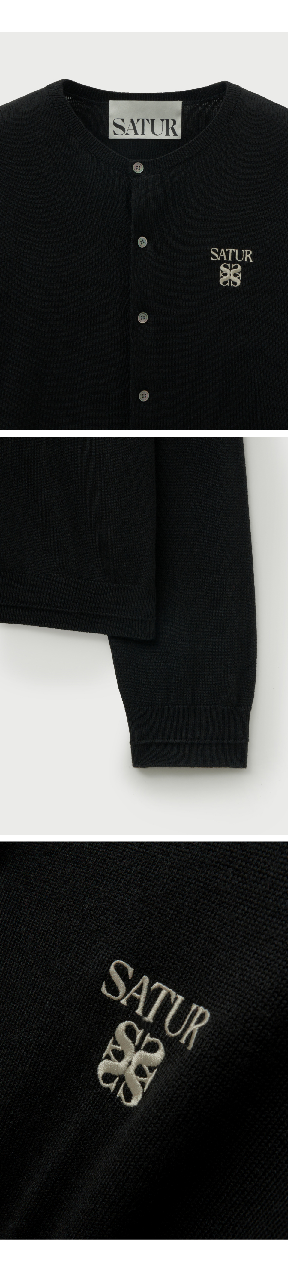 SATUR Loren Basic Crewneck Fine Cardigan Black