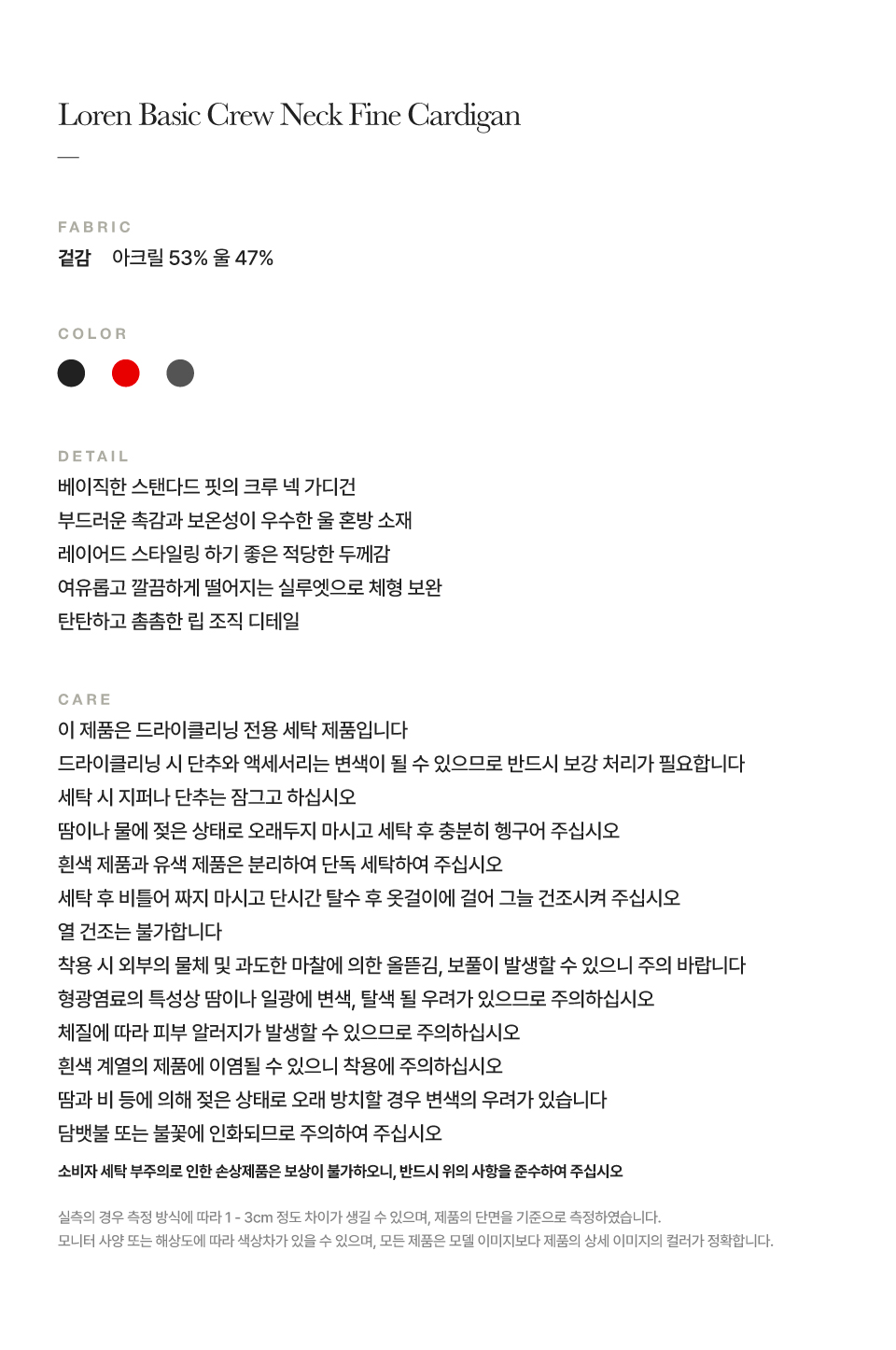 측정 방법에 따라 사이즈에 일부 오차가 있을 수 있습니다.