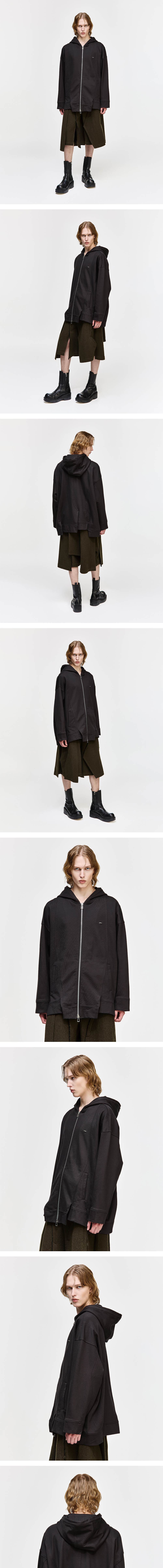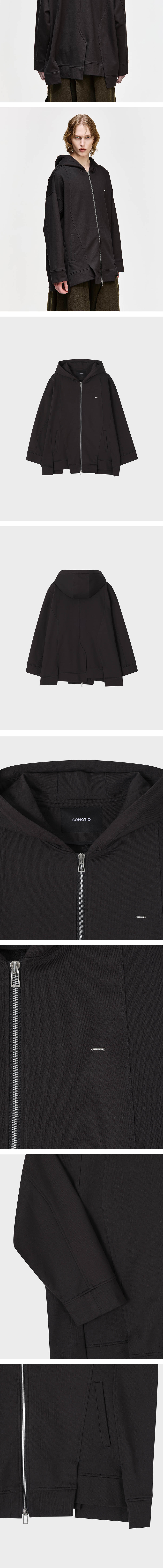 - SONGZIO 컬렉션 어시메트릭 컷 아웃 집업 - 은은한 광택과 탄탄한 소재의 실켓가공 면 패브릭 - 어시메트릭 절개 라인과 버티컬 디테일의 디자인 - 3패널 후드 패턴으로 입체적인 후드 디자인 - 전면부 SONGZIO 메탈 장식 디테일 - 후면부 SONGZIO LOGO 엠브로이드 디테일 - 밑단 슬릿 디테일 - SONGZIO LOGO의 8호 2WAY 지퍼 디테일 - 오버사이즈 실루엣 - MADE IN KOREA