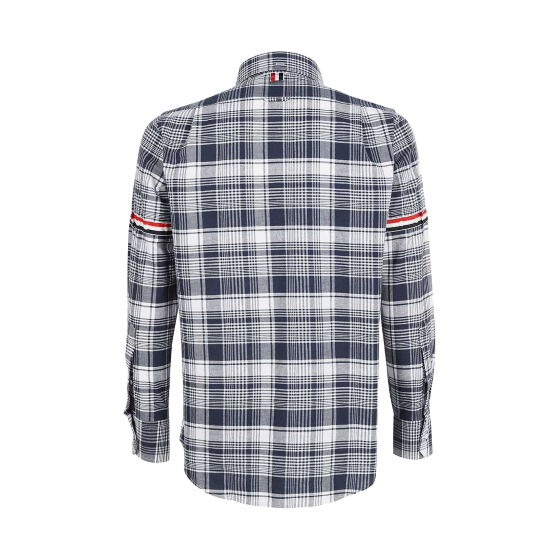 톰브라운 헤어라인 마드라스 체크 스트라이프 암밴드 스트레이트 핏 셔츠 네이비