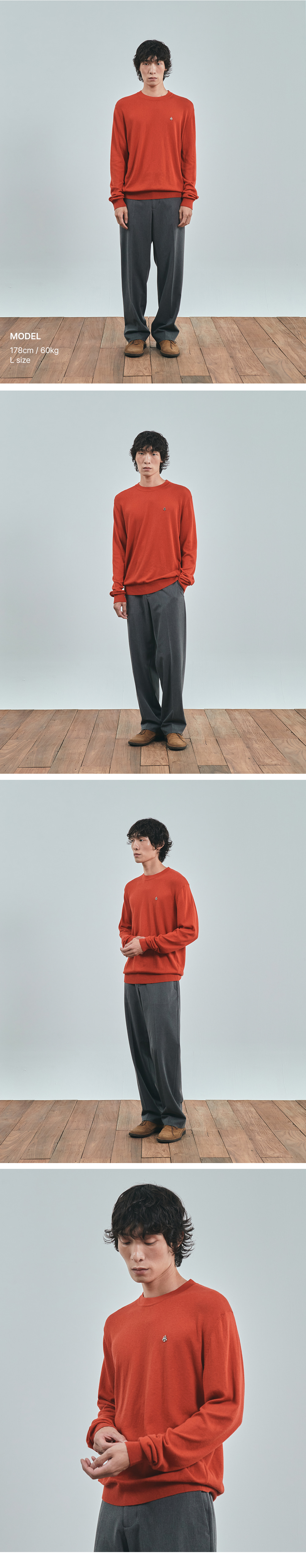 유니폼브릿지 실크 블렌디드 크루넥 니트 브릭