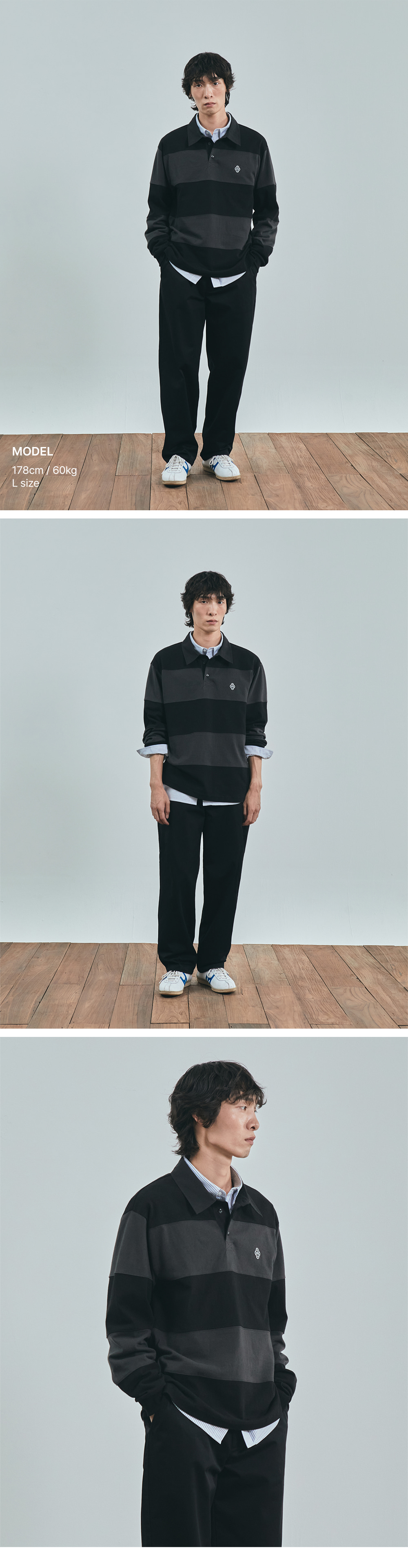 유니폼브릿지 스트라이프 럭비 롱슬리브 티셔츠 블랙