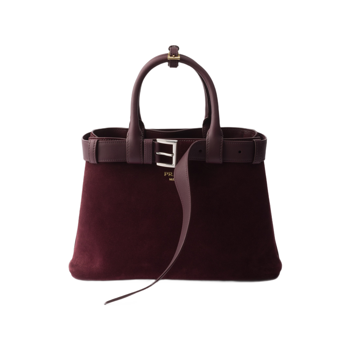 Prada Medium Prada Buckle Suede Bag with Belt Burgundy