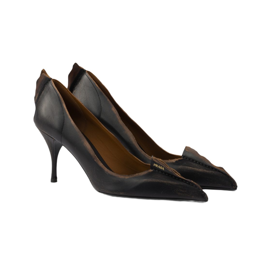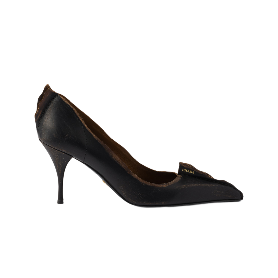 (W) 프라다 앤틱 레더 펌프스 블랙 탄