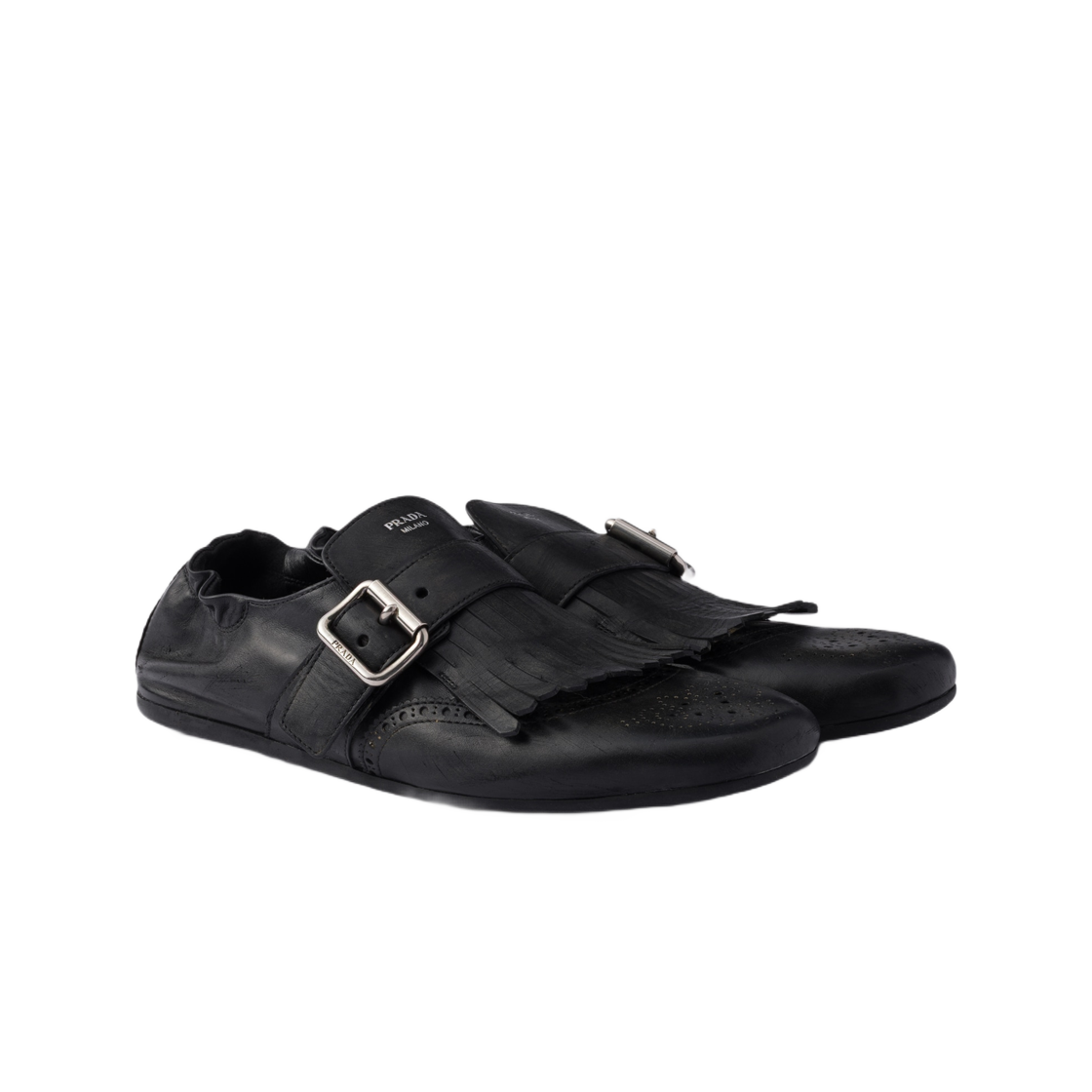 (W) 프라다 셔플 레더 슈즈 버클 블랙
