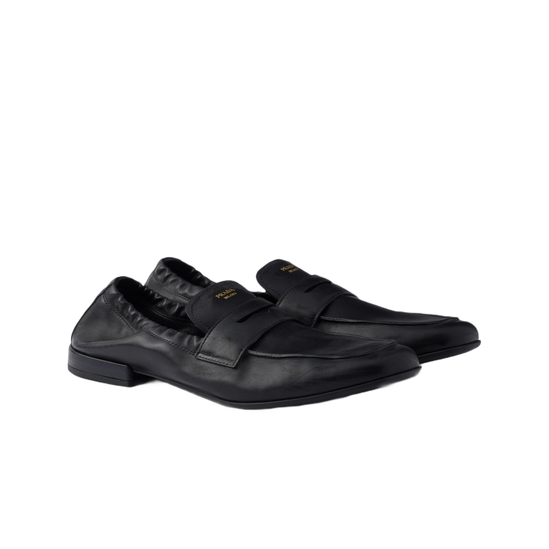 (W) Prada Shuffle Antiqued Leather Loafers Black