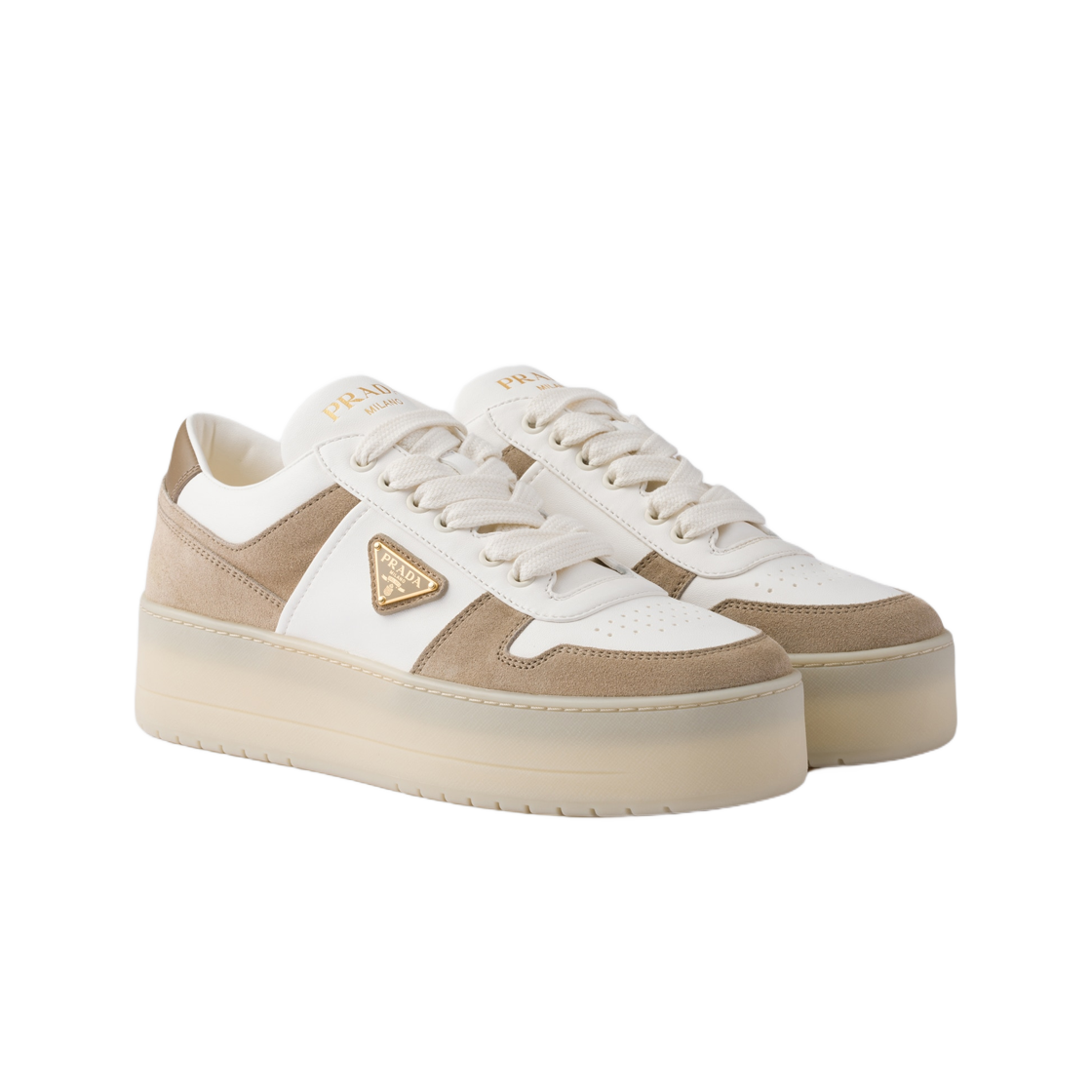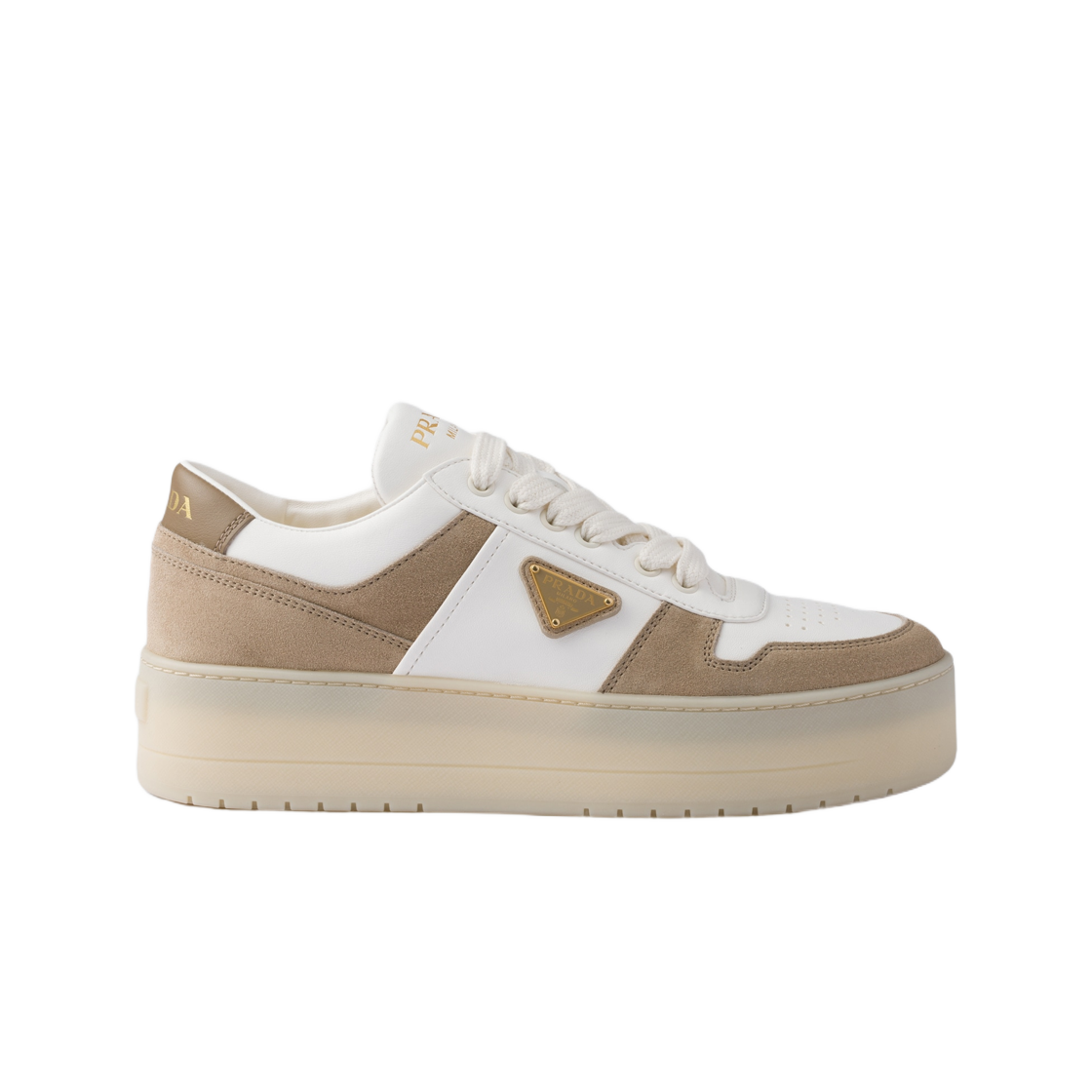 (W) 프라다 다운타운 볼드 나파 레더 앤 스웨이드 스니커즈 데저트 베이지