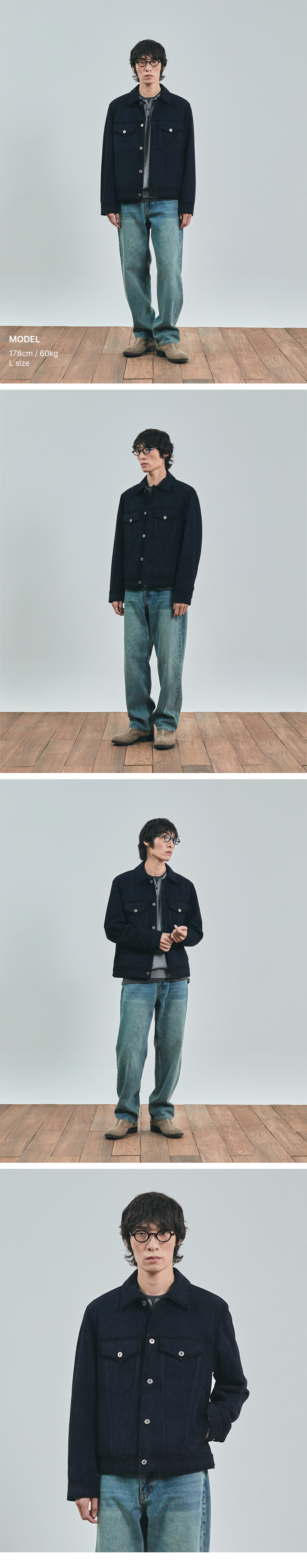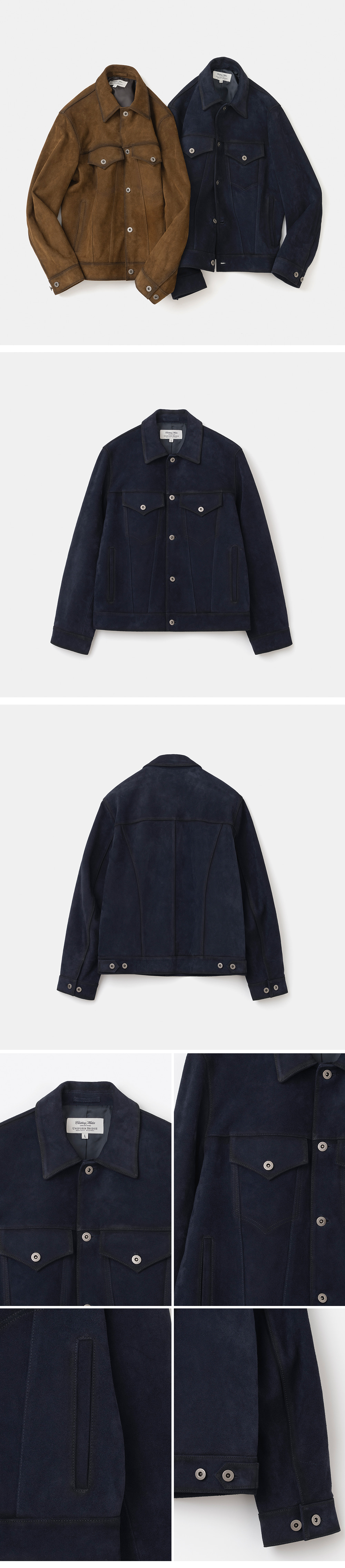 유니폼브릿지 카우 스웨이드 트러커 자켓 네이비