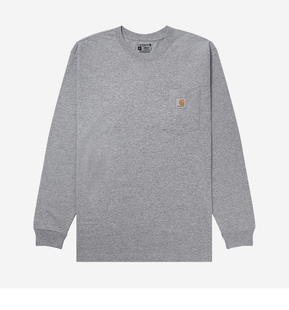 칼하트 루즈핏 헤비웨이트 레귤러 롱슬리브 포켓 티셔츠 헤더 그레이