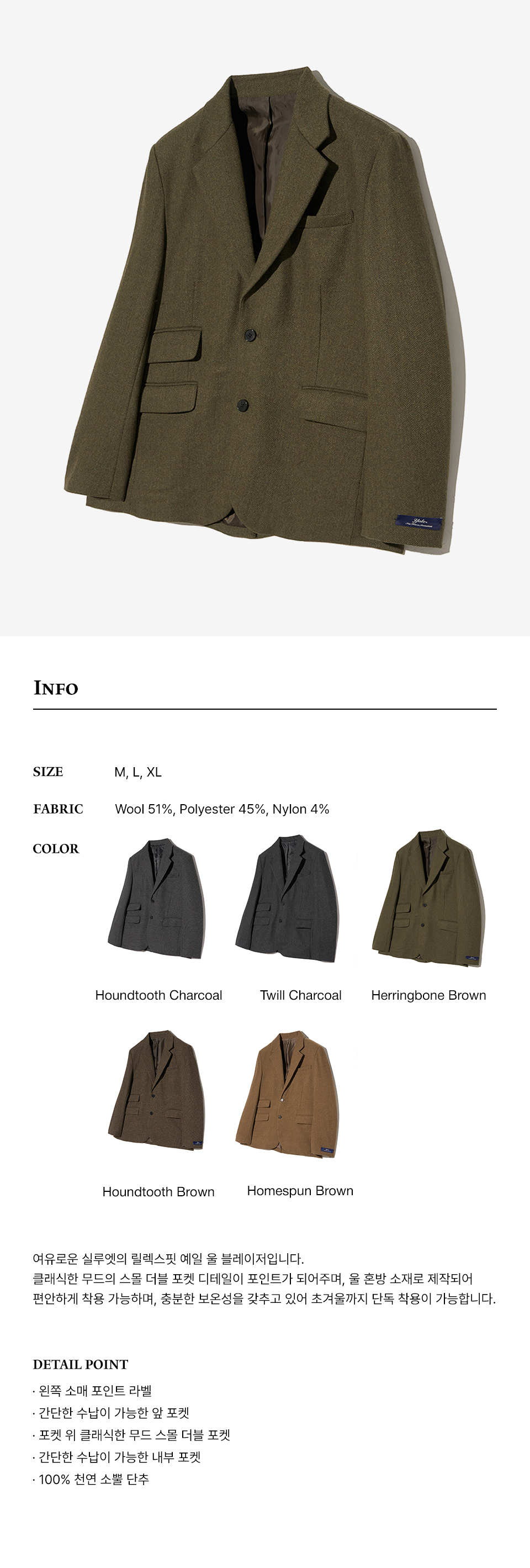 예일 헤리티지 울 블레이저_헤링본 브라운