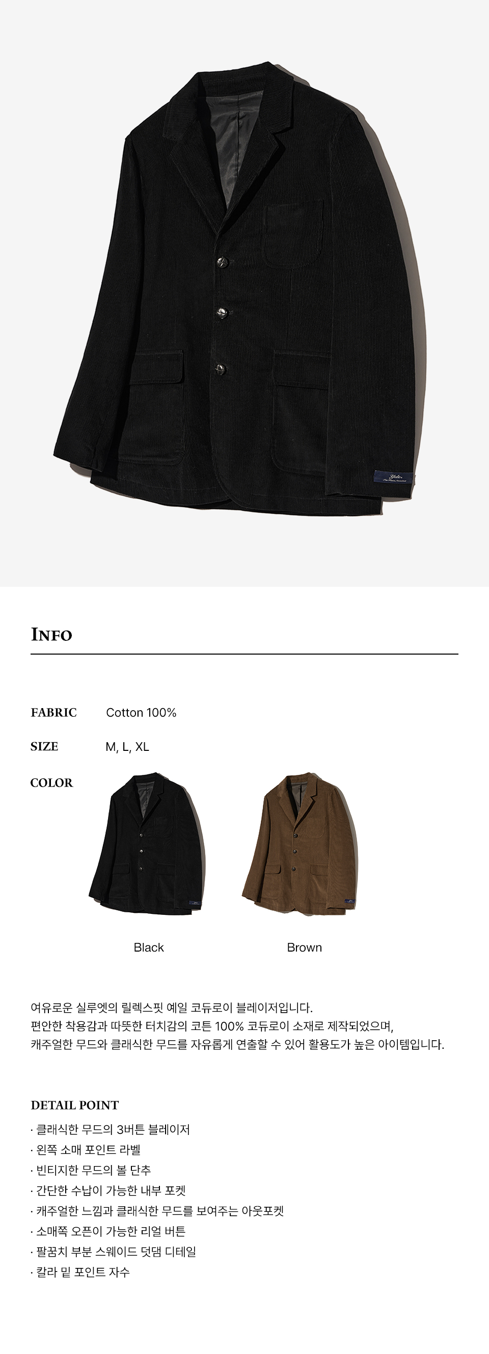 예일 클래식 코듀로이 3버튼 블레이저_블랙