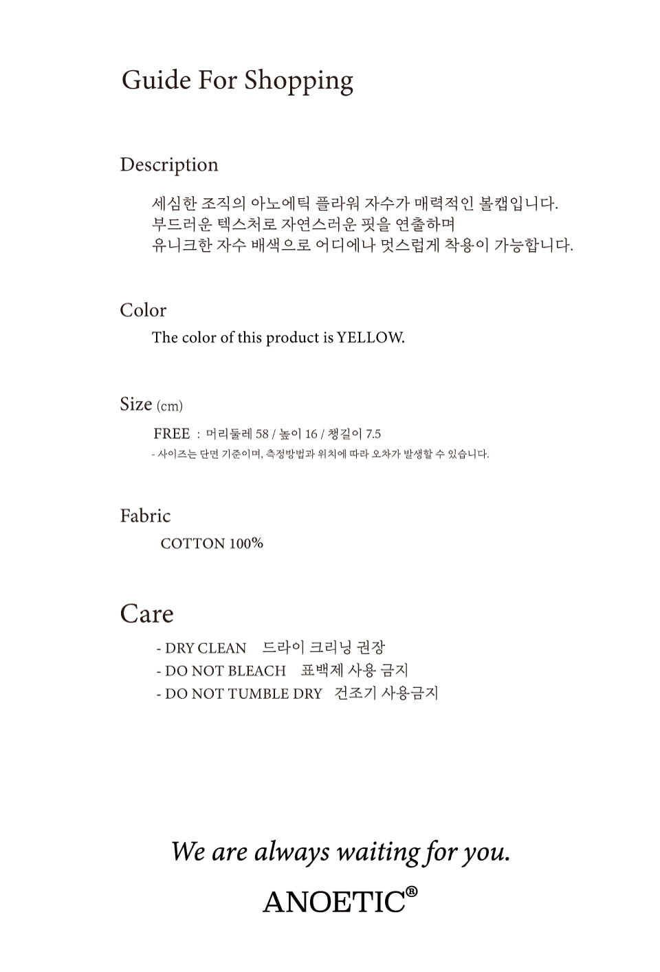 아노에틱 플라워 믹스 볼캡 옐로우