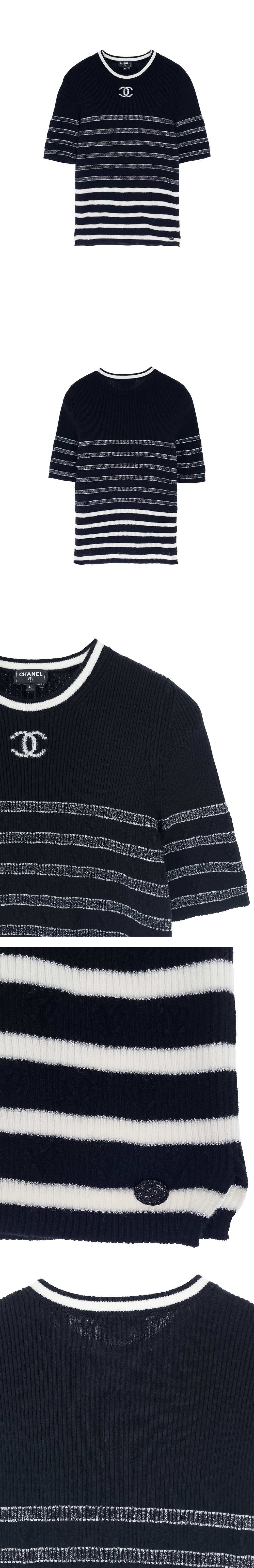 샤넬 22B CC로고 스트라이프 캐시미어 니트탑 40 블랙/멀티컬러