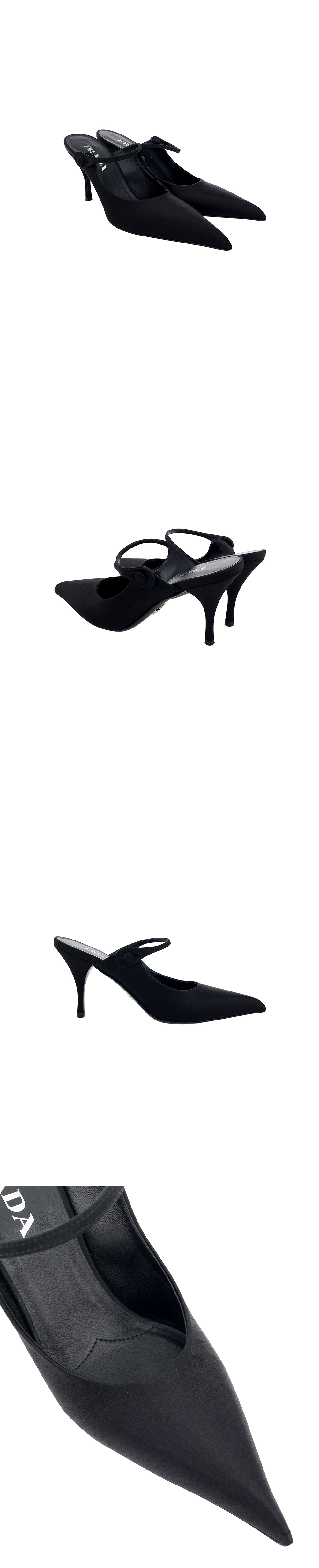 프라다 새틴 하이힐 뮬 38 블랙