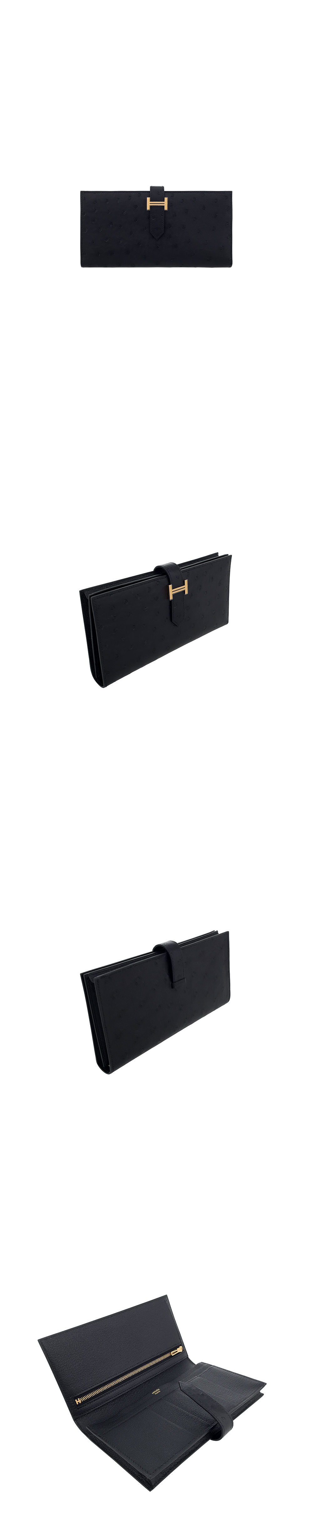 에르메스 오스트리치 베안장지갑 블랙 금장