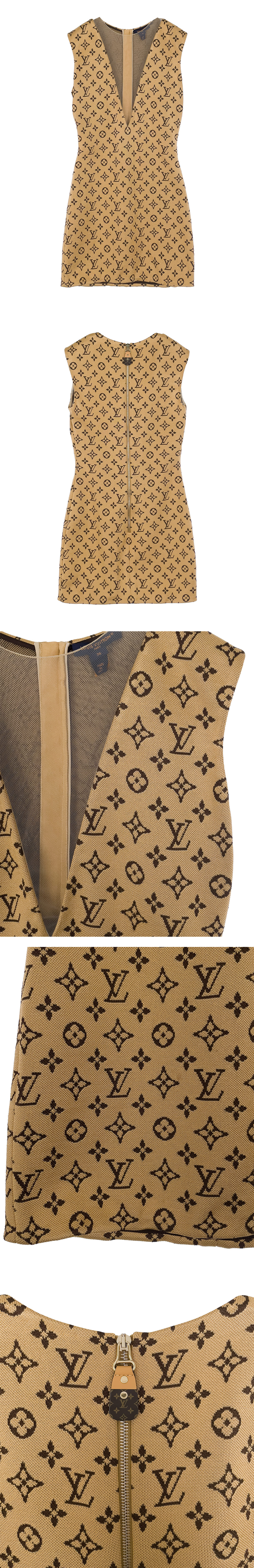 Louis Vuitton Tulle Insert Monogram Jacquard Dress 36 Beige Brown