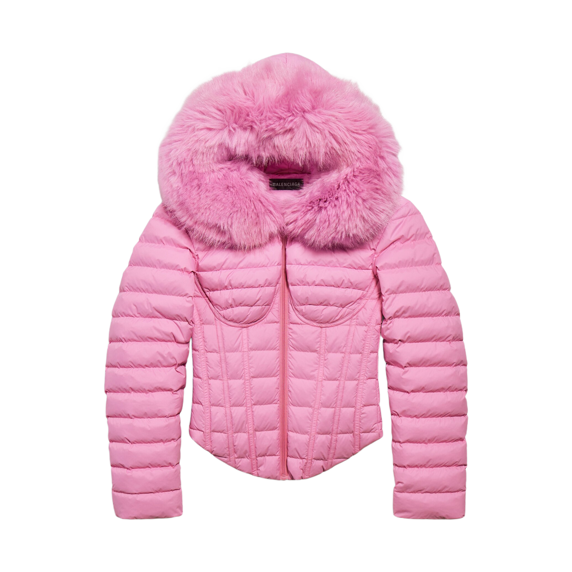 (W) Balenciaga Hooded Corseted Puffer In Pink