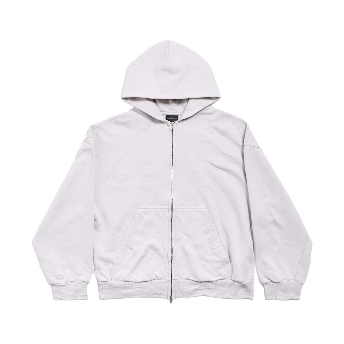 Balenciaga Back Zip Up Hoodie Regular Fit In Dirty White Baby Pink
