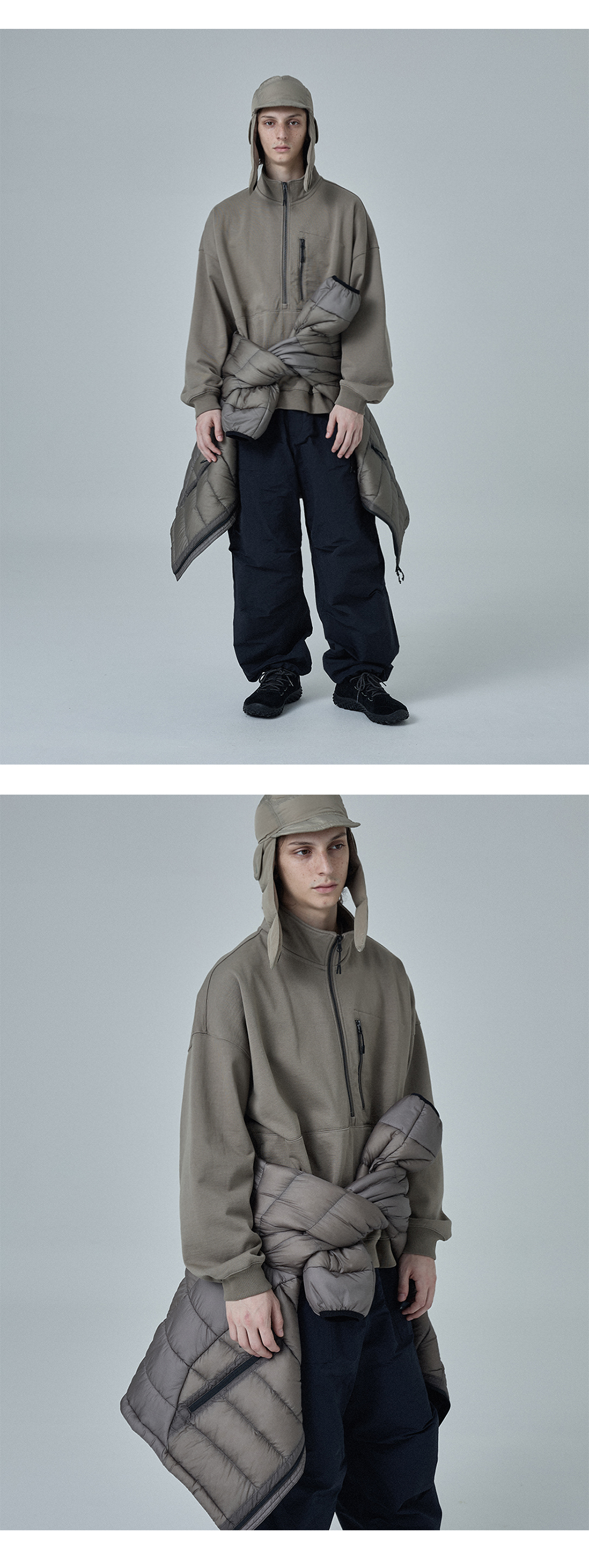 밀리터리 퍼티그 팬츠에 실용적인 디테일을 더한 아이템 · 여유 있는 편안한 실루엣. · 고밀도의 나일론/면 혼방 원단 사용. · 전면부 입체 분량이 있는 직사각형 패치 포켓. · 스냅 여밈의 덮개가 부착되어 있는 후면부 패치 포켓. · 중요한 소지품 수납에 용이한 우측 사이드 심 부분 지퍼 포켓. · 무릎에 턱을 넣어 편안한 착용감과 풍성한 실루엣 연출. · 자석이 부착된 버클을 사용하여 편리하게 착용 가능. · 신축성 있는 내장형 이밴드와 사이즈 조절이 가능한 허리 벨트 사양. · 실루엣 조절이 가능한 밑단 스트링으로 2가지 타입으로 연출 가능.