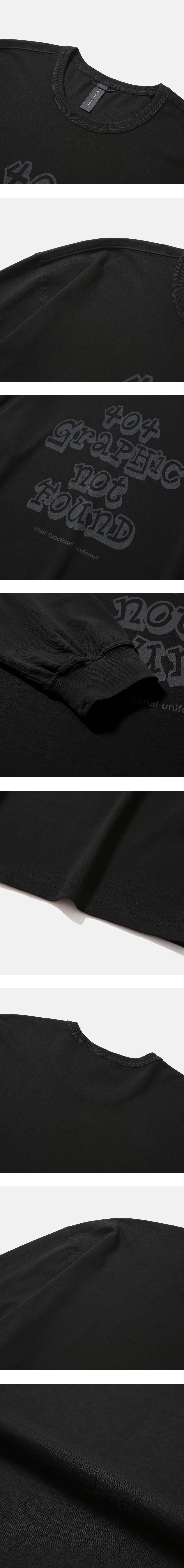 그래픽 프린트가 돋보이는 긴팔 티셔츠 · 여유 있는 오버사이즈 실루엣. · 골지가 있는 립 오프닝. · 가볍고 부드러우며 표면이 매끈한 면 원단 사용. · 수축 방지 가공된 원단으로 세탁 후에도 변형이 적음. · 편안한 착용감을 위해 손목 립 부분의 시접을 갈라서 처리. · 전면부 '404 GRAPHIC NOT FOUND' 그래픽 프린트.