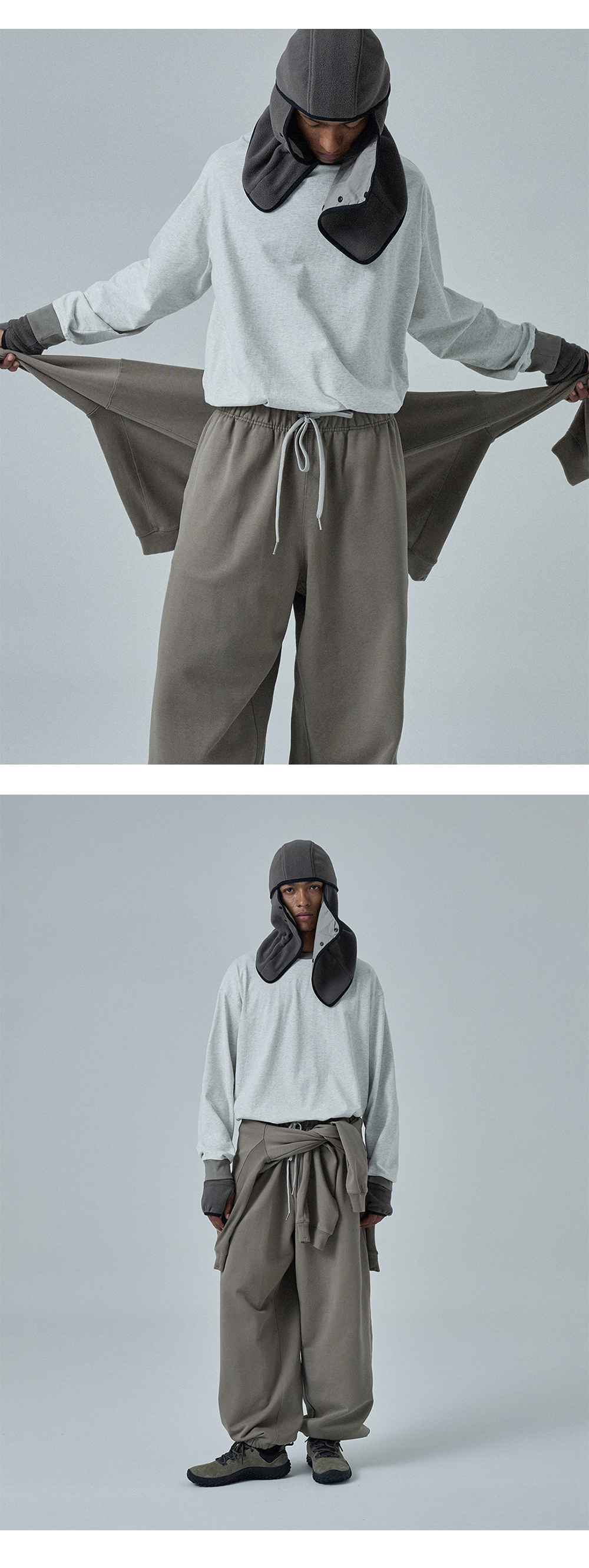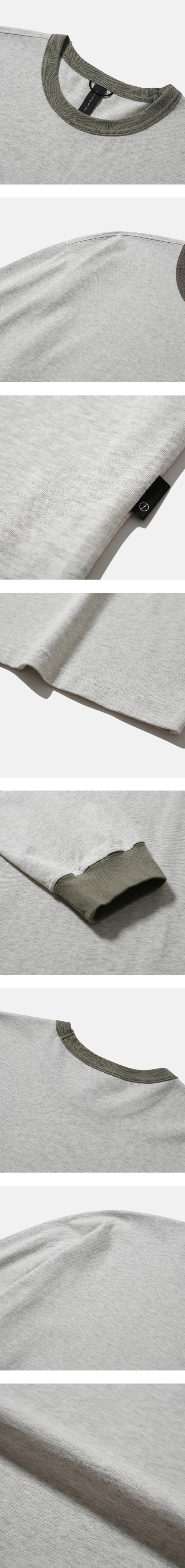 경쾌한 느낌의 긴팔 링거 티셔츠 · 여유 있는 오버사이즈 실루엣. · 골지가 있는 립 오프닝. · 두께감이 있는 고밀도의 부드러운 면 원단 사용. · 수축 방지 가공된 원단으로 세탁 후에도 변형이 적음. · 립 부분은 배색으로 구성하여 경쾌한 느낌 강조. · 좌측 사이드 심 부분 모이프 심볼 포인트 라벨 부착. · 편안한 착용감을 위해 손목 립 부분의 시접을 갈라서 처리.