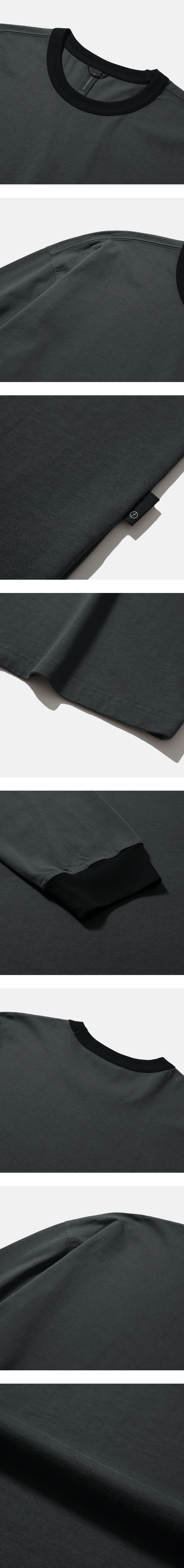 경쾌한 느낌의 긴팔 링거 티셔츠 · 여유 있는 오버사이즈 실루엣. · 골지가 있는 립 오프닝. · 두께감이 있는 고밀도의 부드러운 면 원단 사용. · 수축 방지 가공된 원단으로 세탁 후에도 변형이 적음. · 립 부분은 배색으로 구성하여 경쾌한 느낌 강조. · 좌측 사이드 심 부분 모이프 심볼 포인트 라벨 부착. · 편안한 착용감을 위해 손목 립 부분의 시접을 갈라서 처리.