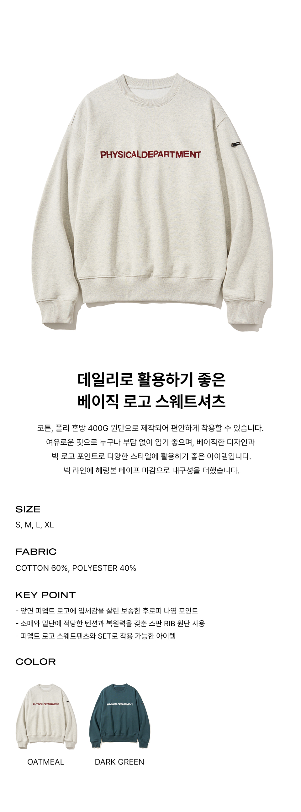 피지컬 디파트먼트 P-Dept 오리지널 로고 스웨트셔츠 오트밀