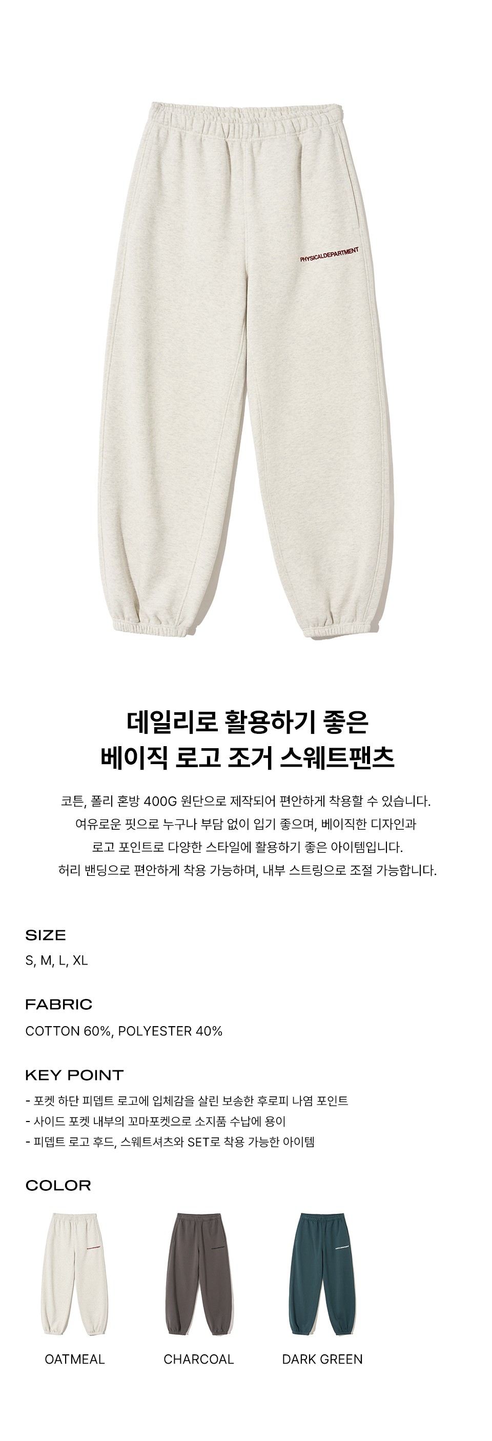 피지컬 디파트먼트 P-Dept 오리지널 로고 스웨트 팬츠 차콜