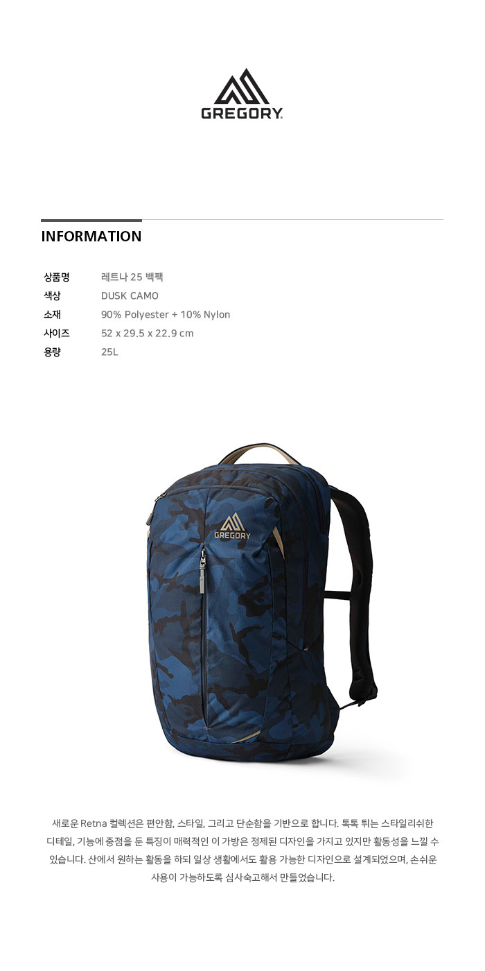 그레고리 레트나 25 백팩 더스크 카모