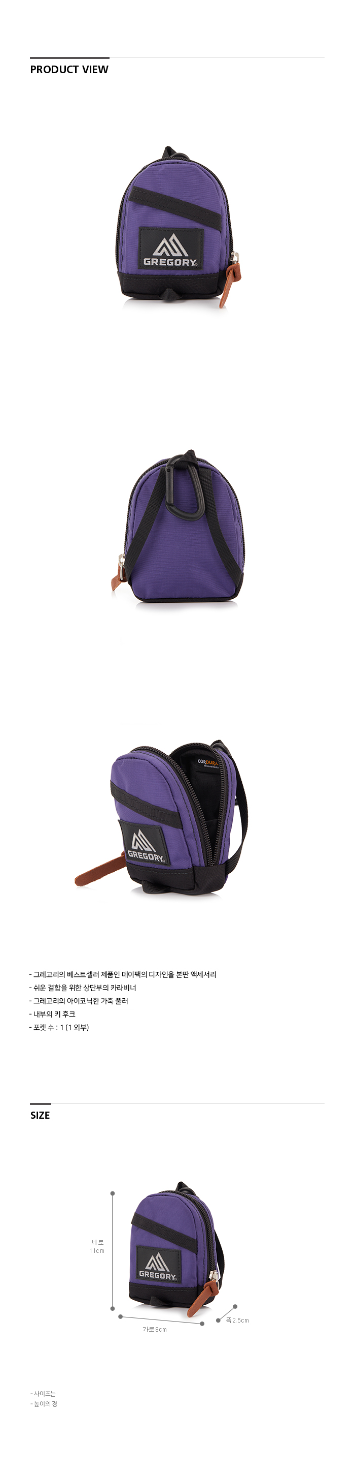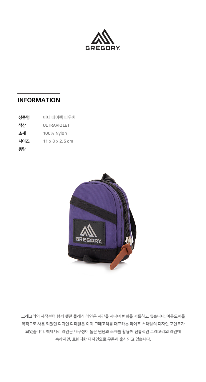 그레고리 미니 데이팩 파우치 울트라바이올렛