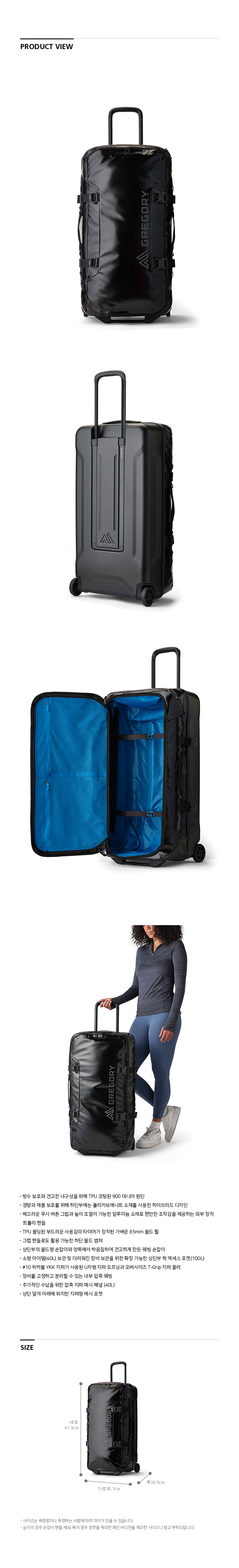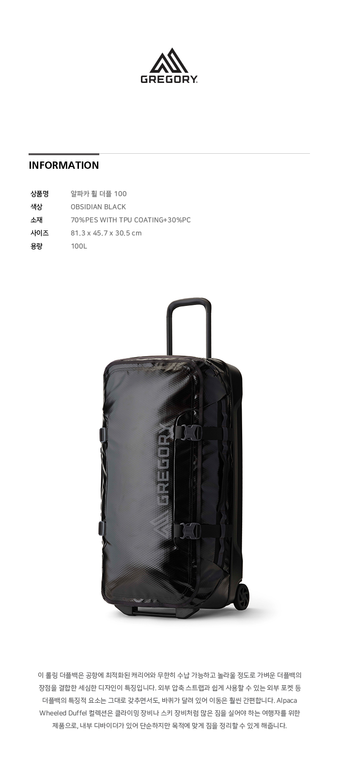 그레고리 알파카 휠 더플 100 옵시디언 블랙