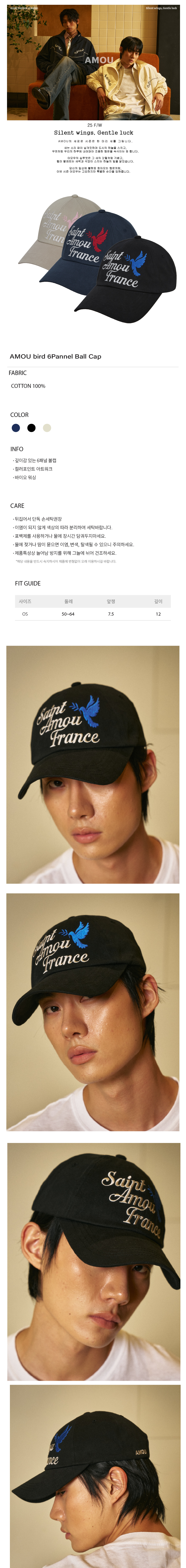 아모우 버드 6패널 볼캡 블랙