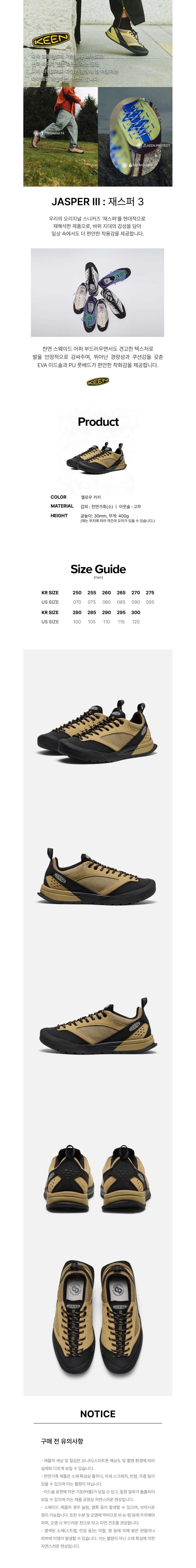 킨 재스퍼 III 카키 남성 스니커즈 카키 블랙