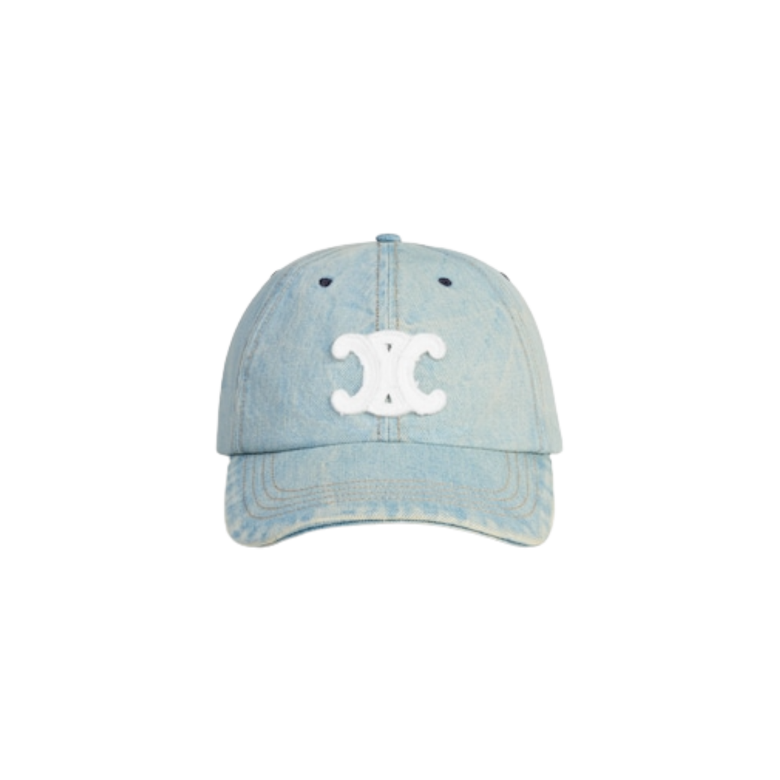 Celine Triomphe Cap in Cotton Denim Westside Wash Destroyed