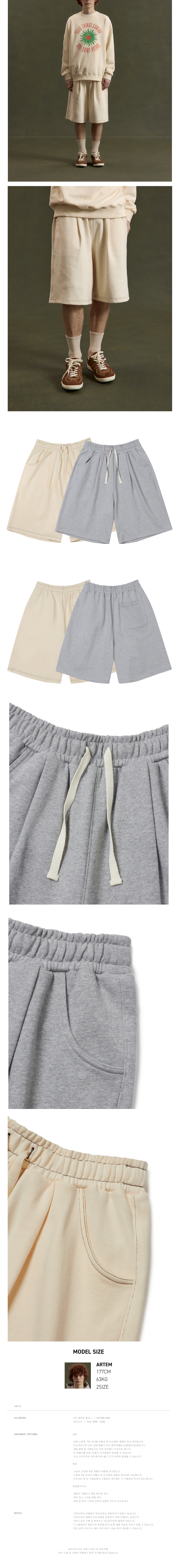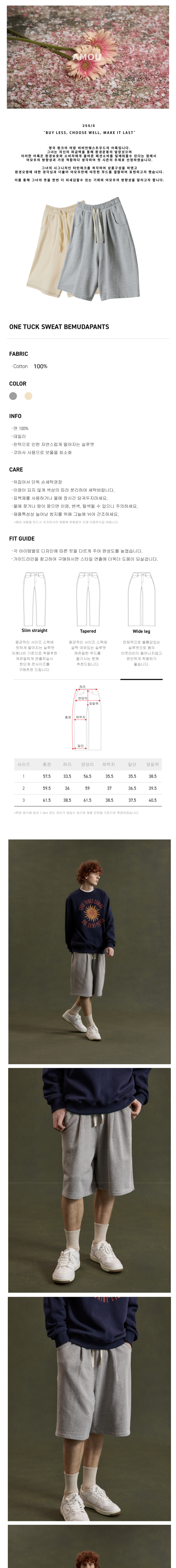 아모우 원턱 스웻 버뮤다 팬츠 크림베이지