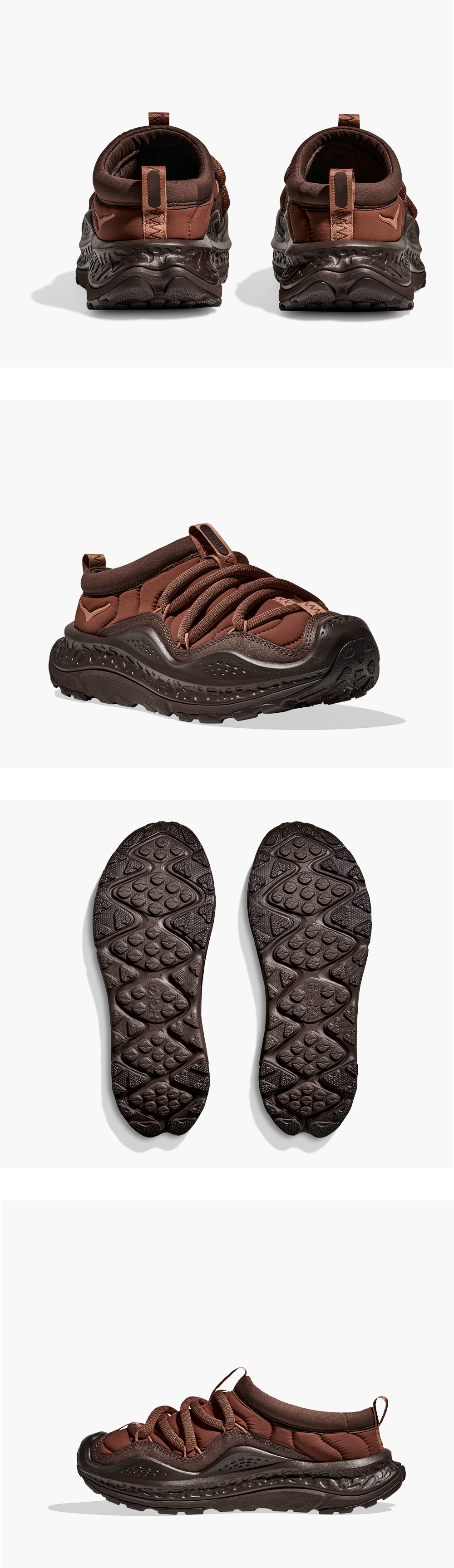 러닝 후 피로를 빠르게 회복시켜줄 퍼포먼스 기반 회복 슈즈인 호카 오라 프리모 미네랄 브라운 캐스트 아이언입니다. - 부드러운 니트 소재의 카라로 안정적이고 편안한 착화감 제공 - 엘라스틱 레이스 시스템으로 빠르고 간편한 착용 - 푹신한 패딩 어퍼로 따뜻하고 안락한 착용감 구현